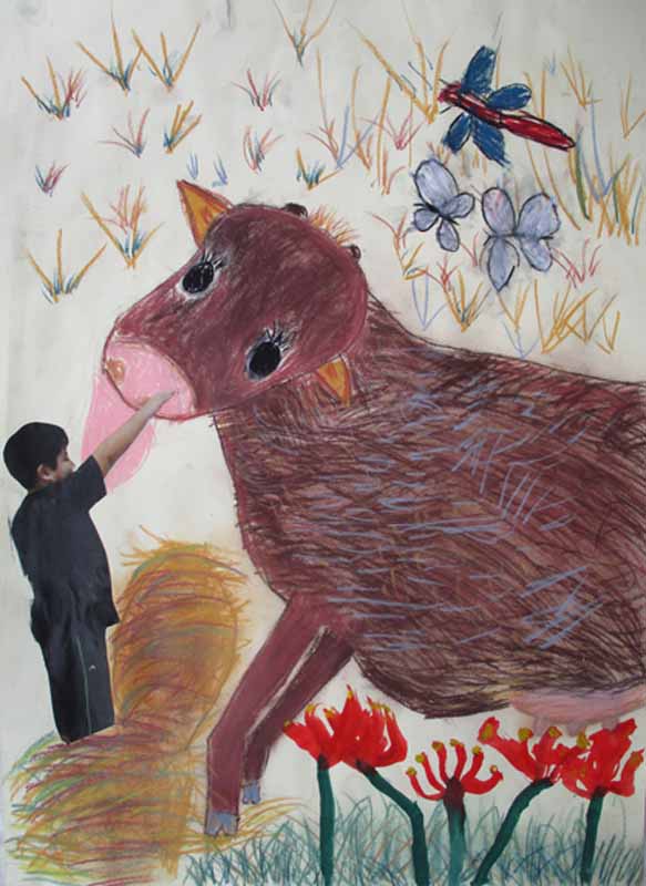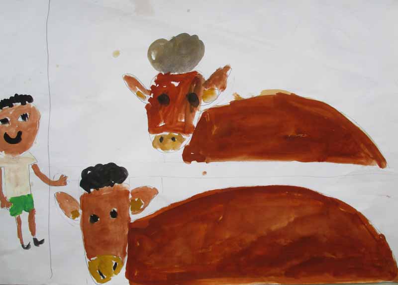 題名 牛をさわろうとしているぼく
