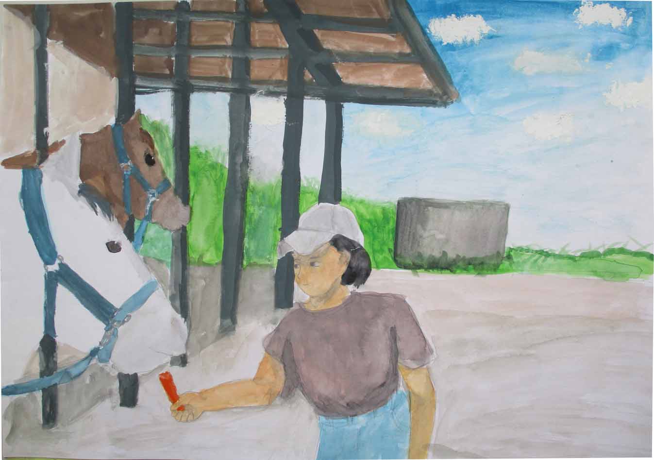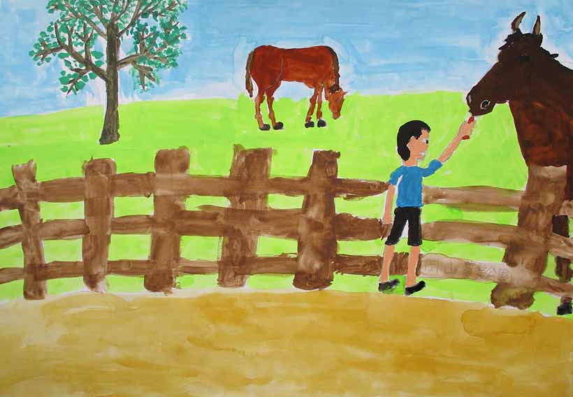 題名 馬にえさをあげたよ