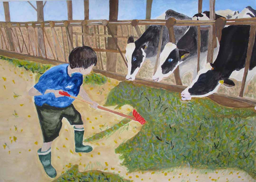 題名 牛のちちしぼりとえさやり