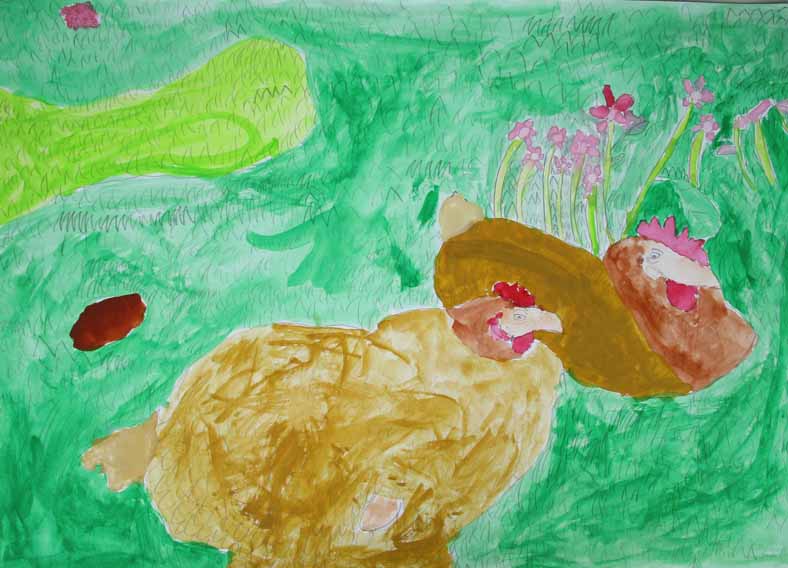 題名 二羽の仲良しなニワトリ