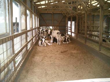 牛床にはノコクズが敷かれ常に乾燥した状態を保つよう配慮している。