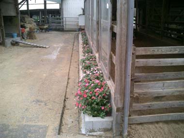 牛舎の内外には、季節の花を植え、地域住民との融和に一役買っています。